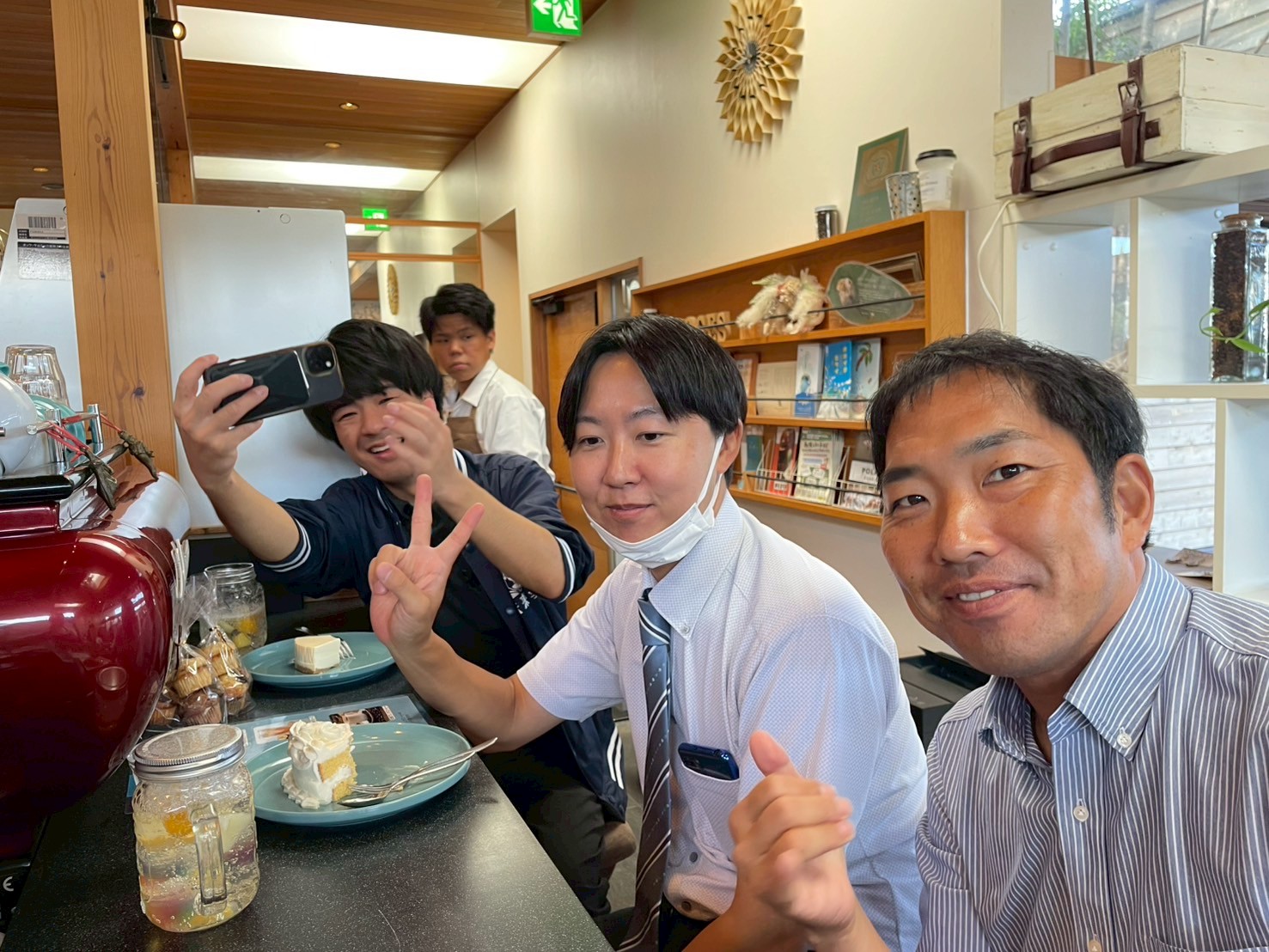 2名はわざわざ厨房から出てきてカメラに✌