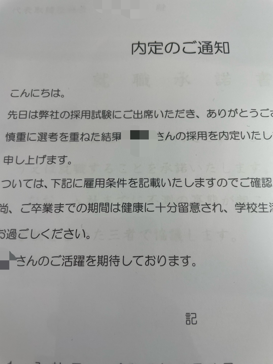 3年生の内定通知が届きました!