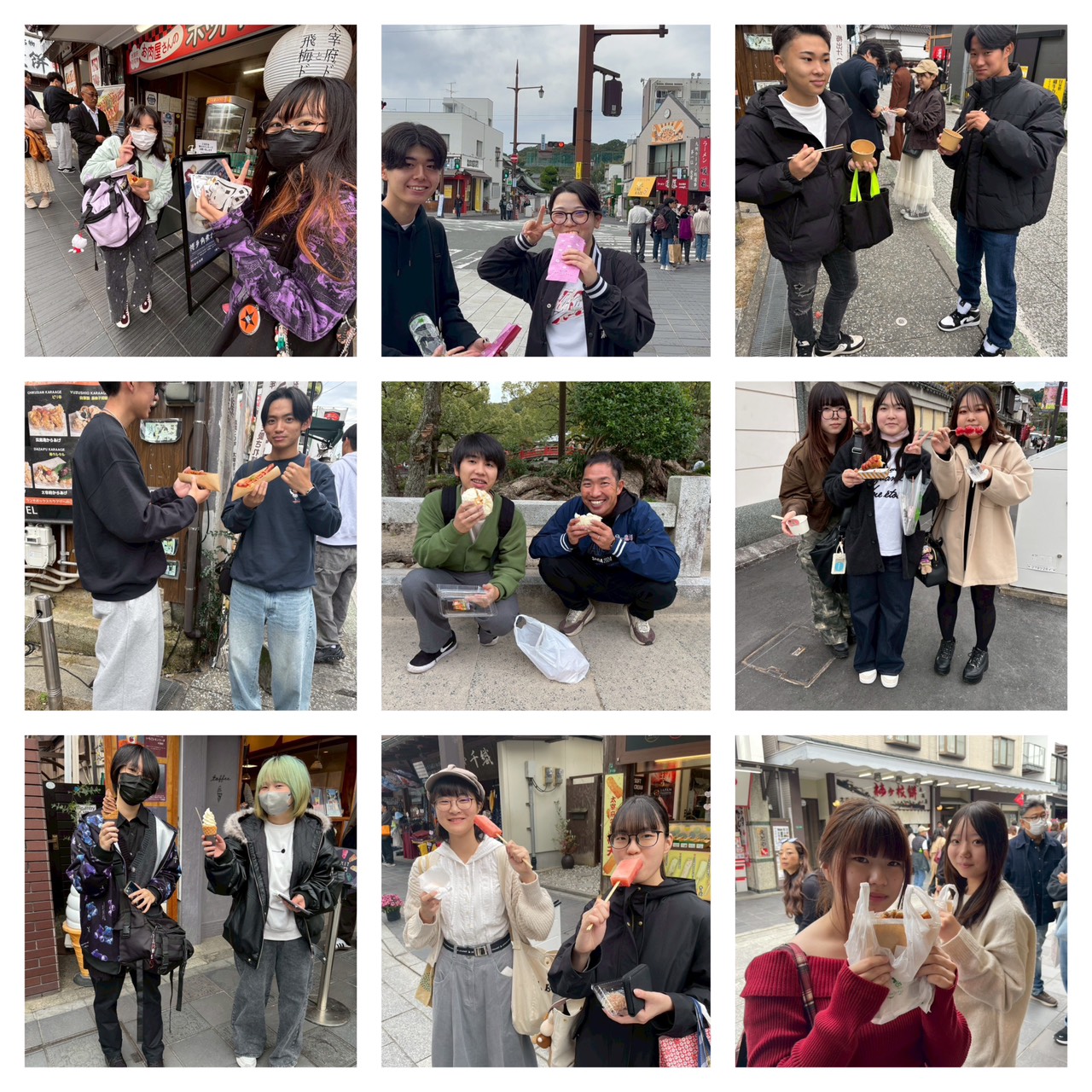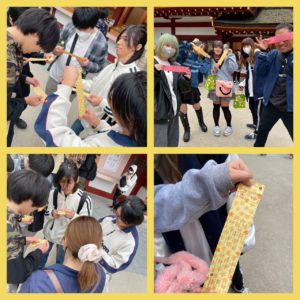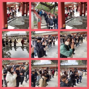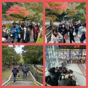 秋の遠足 2025年11月13日 最終更新日時 : 2025年11月13日 MIRAI 色付く山の紅葉を見ながら、今回は少し遠出🚌 これからの受験・就職祈願と、すでに合格と内定を頂いた生徒の御礼で大宰府天満宮に行ってきました⛩ 大分校・佐伯校合わせて125名の参加! 参拝とおみくじは早々に終わらせて、一番の目的である参道での食べ歩き!!! 自由時間を思いっきり食べまくっていました! そして九州国立博物館へ🌟 お腹いっぱいにして、たくさん学べた秋の遠足でした🍂